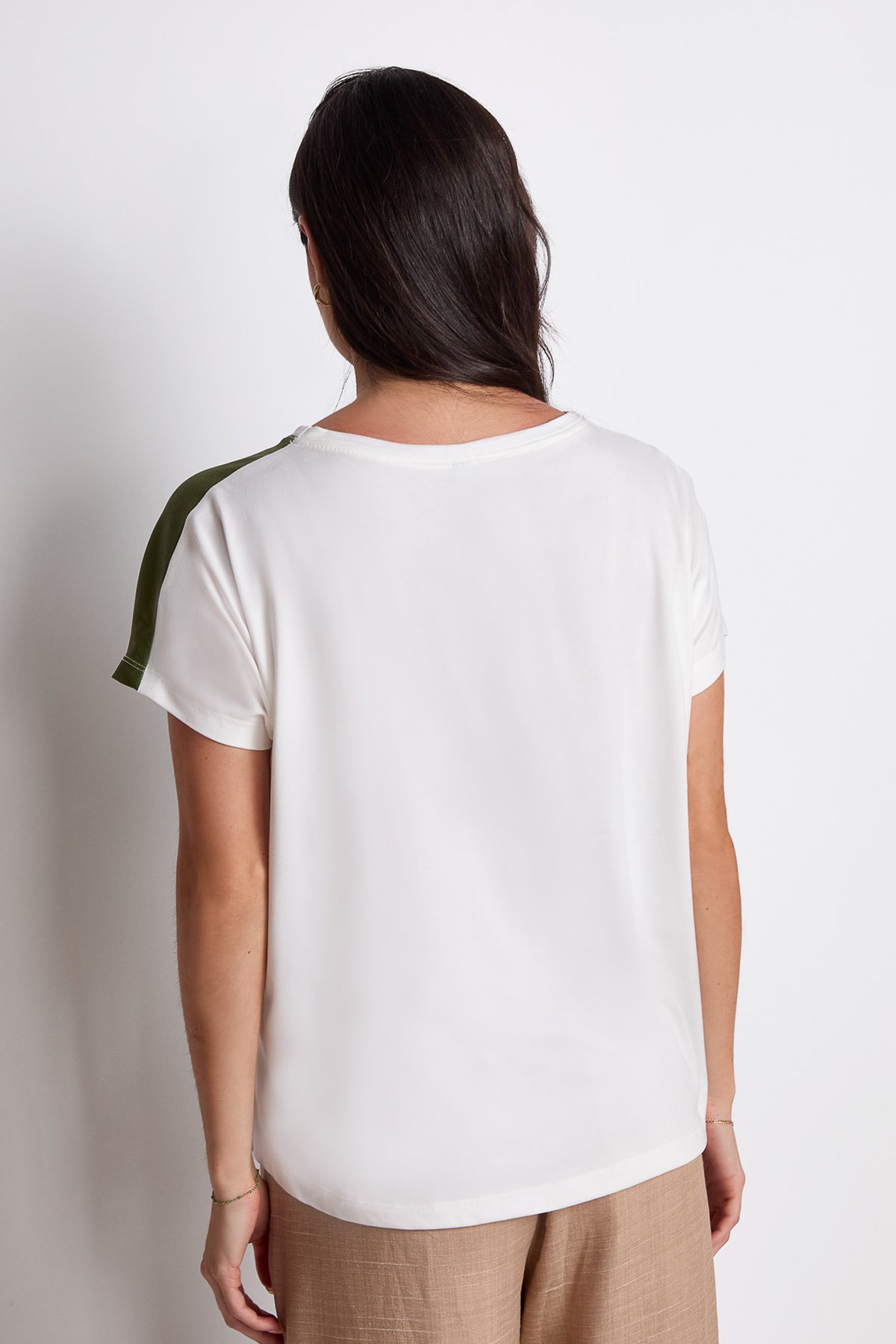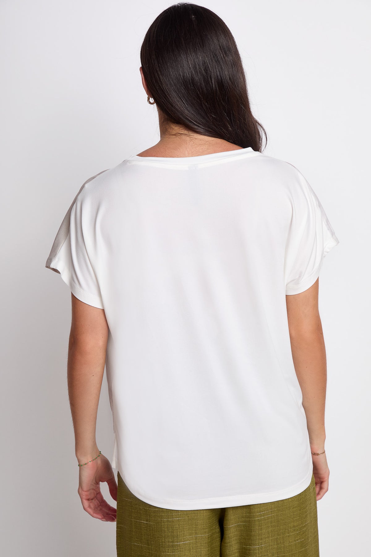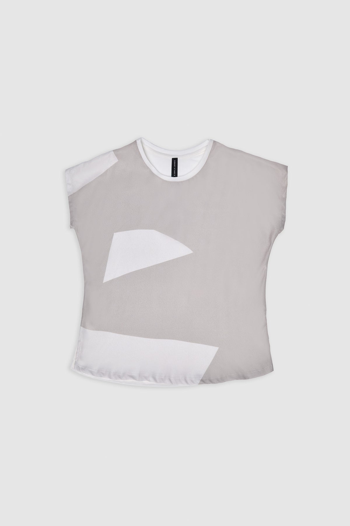 El tejido ligero confiere a la blusa un acabado suave y fluido, realzando su silueta relajada. El diseño geométrico en contraste aporta un toque contemporáneo, mientras que el corte recto y el dobladillo suelto garantizan versatilidad para el día y la noche.
